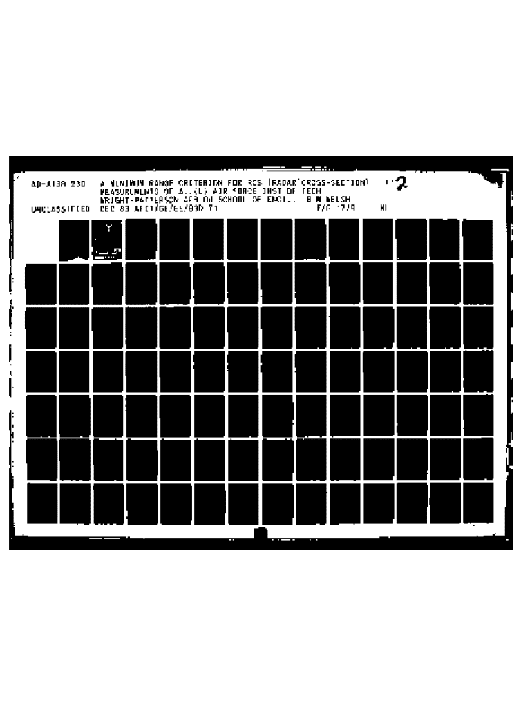 A MINIMUM RANGE CRITERION FOR RCS (RADAR CROSSSECTION) MEASUREMENTS OF A.. (U) AIR FORCE INST OF TECH WRIGHTPATTERSON AFR OH SCHOOL OF ENGI. R M WELSH FIG 17/9 UNLSSIFIED DEC 83 AFITGE/ E I301.1ADAl38