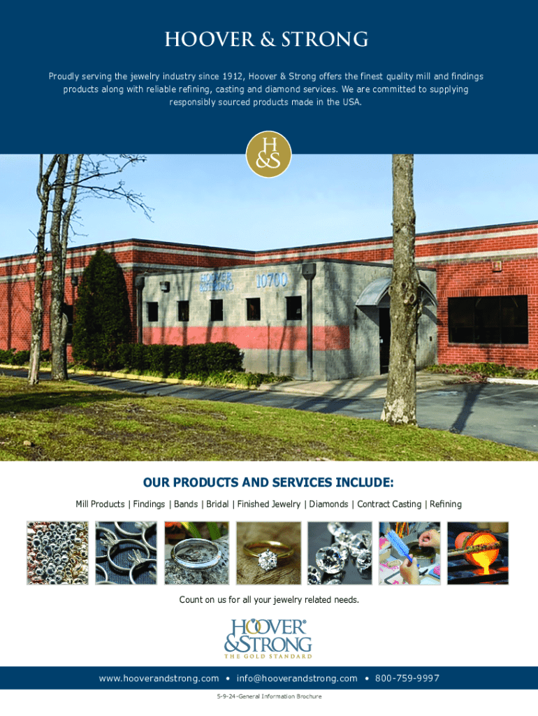 HOOVER & STRONG Proudly serving the jewelry industry since 1912, Hoover & Strong offers the finest quality mill and findings products along with reliable refining, casting and diamond services. We