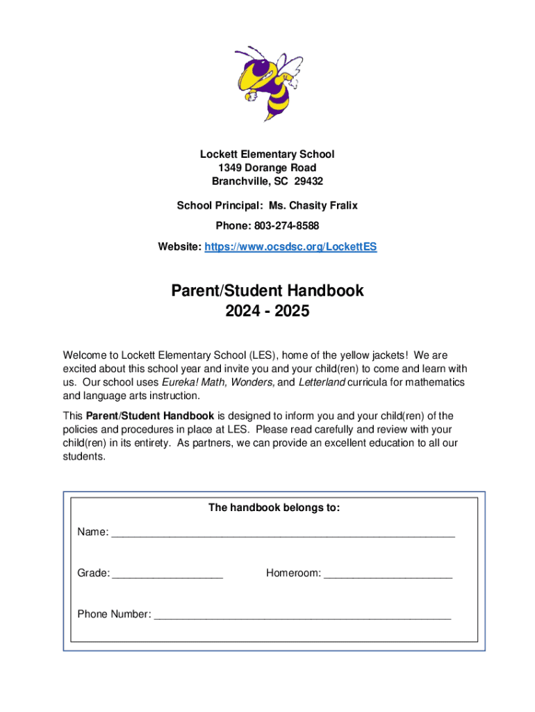 The Parent/Student Handbook for Lockett Elementary School provides essential information regarding school policies, procedures, attendance expectations, behavior guidelines, and other vital details for students and parents for the academic year 2024-2025.