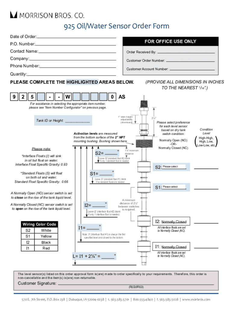 925 Oilwater Sensor Order is not the form you're looking for?Search for another form here.
