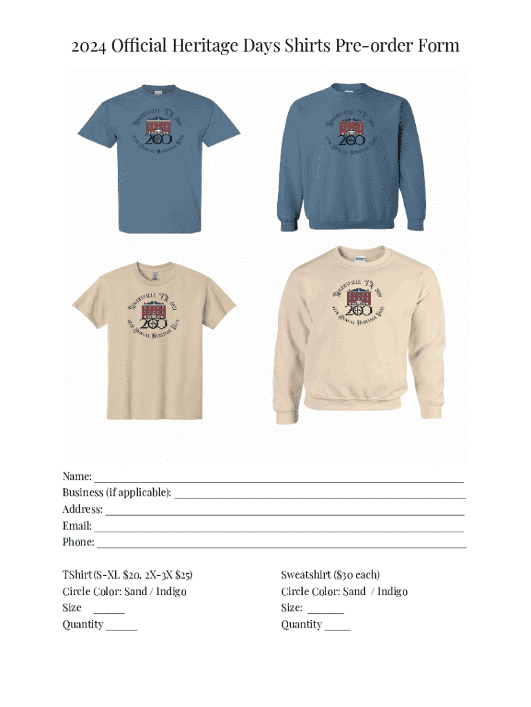 Get the free 2024 Official Heritage Days Shirts Pre-order Form