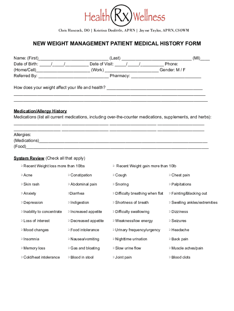 Get the free NEW WEIGHT MANAGEMENT PATIENT MEDICAL ...