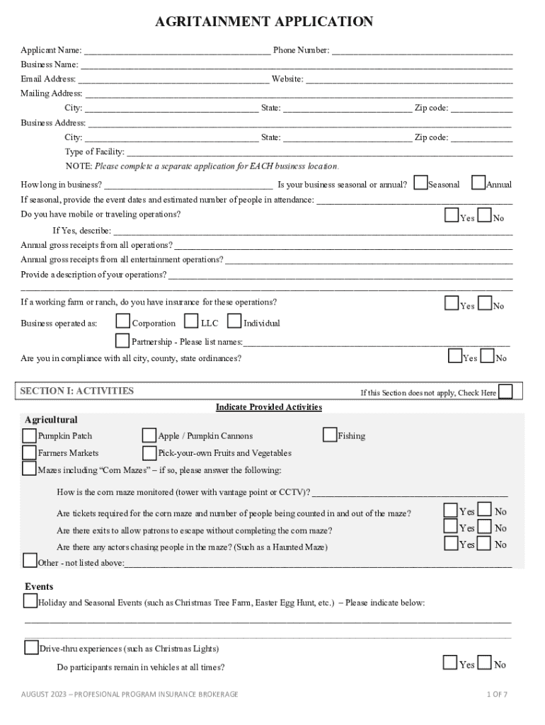 AGRITAINMENT APPLICATION Applicant Name: ___ Phone Number: ___ Business Name: ___ Email Address: ___ Website: ___ Mailing Address: ___ City: ___ State: ___ Zip code: ___ Business Address: ___ City: