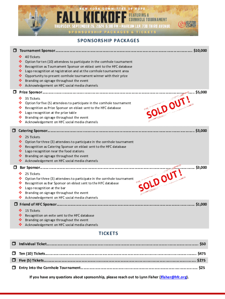 Fill out your sponsorship packages online with pdfFiller!