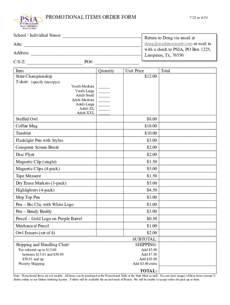 Fill out your promotional items order form online with pdfFiller!