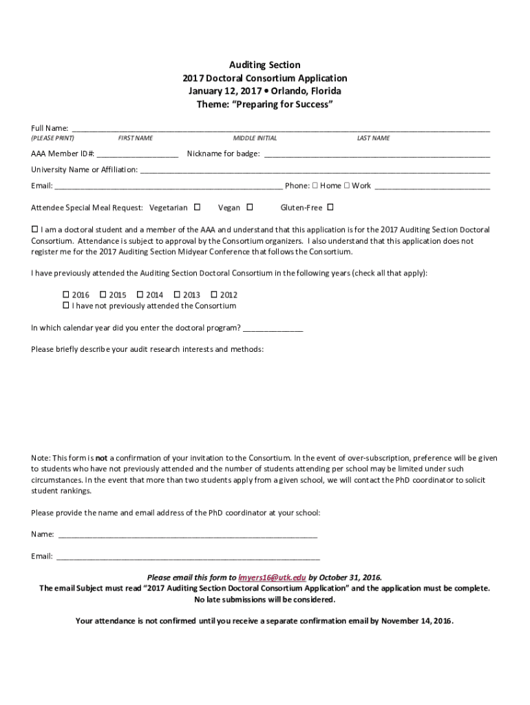 Fill out your 2017 doctoral consortium application online with pdfFiller!