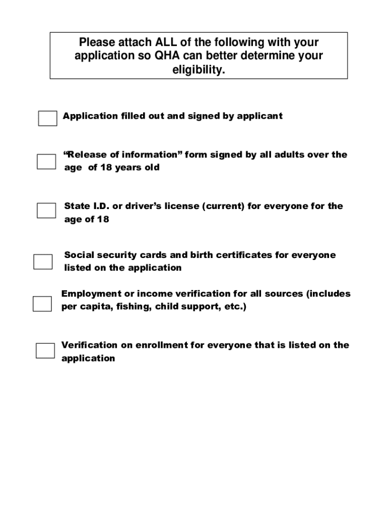 This document is an application for housing through the Quileute Housing Authority, outlining the requirements and information needed from applicants, including personal identification, income verification, family composition, and housing history.