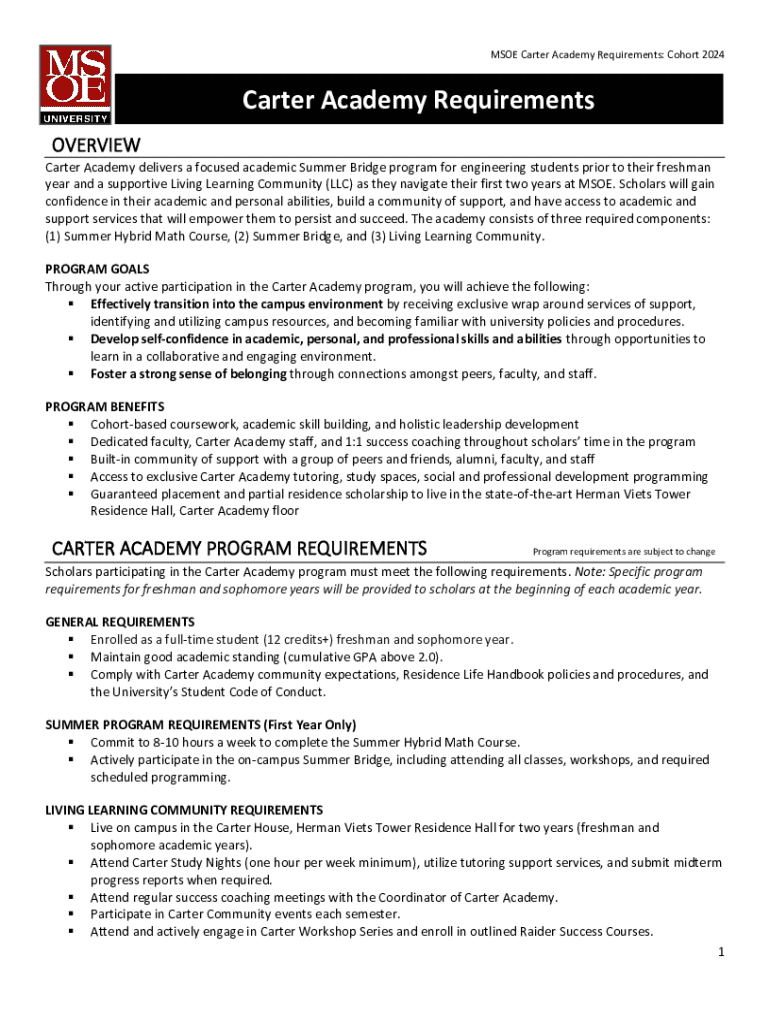 Get the free Carter Academy Requirements: Cohort 2024
