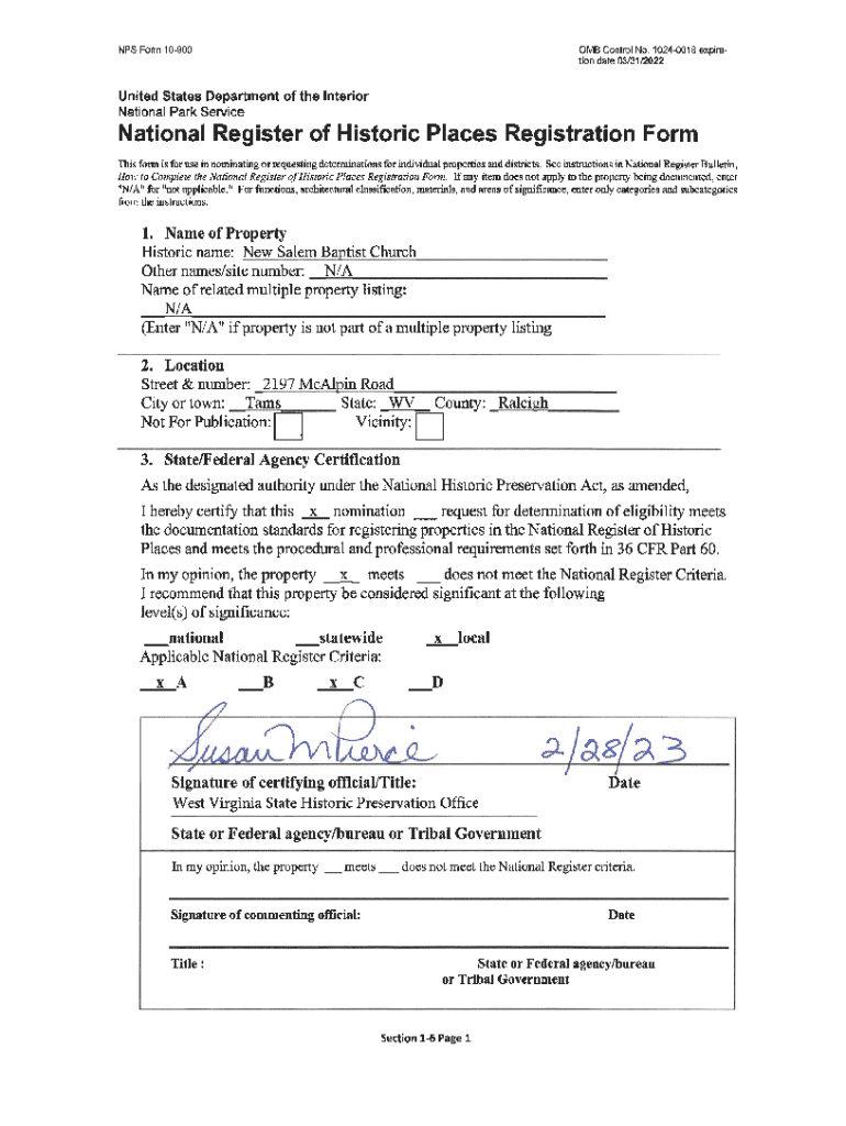United States Department of the Interior National Park Service / National Register of Historic Places Registration Form NPS Form 10900OMB Control No. 10240018New Salem Baptist ChurchRaleigh County,
