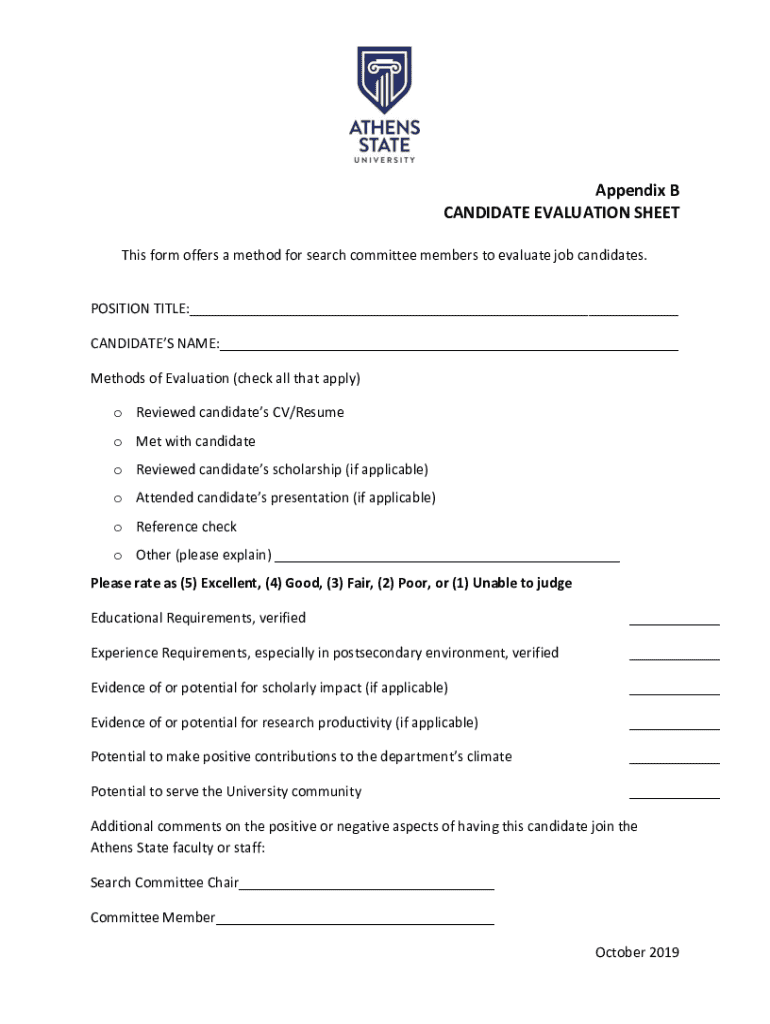 How to fill out candidate evaluation sheetdepartment chairinstitute