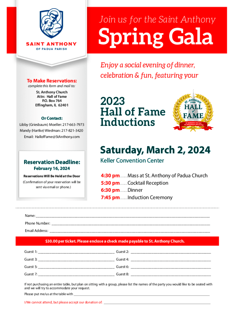 Get the free Saint Anthony Spring Gala Reservation Form