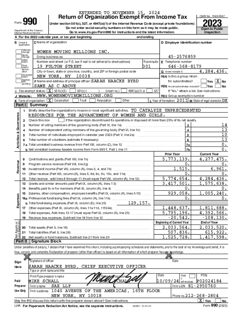 EXTENDED TO NOVEMBER 15, 2024Form990Department of the Treasury Internal Revenue ServiceReturn of Organization Exempt From Income Tax Under section 501(c), 527, or 4947(a)(1) of the Internal Revenue