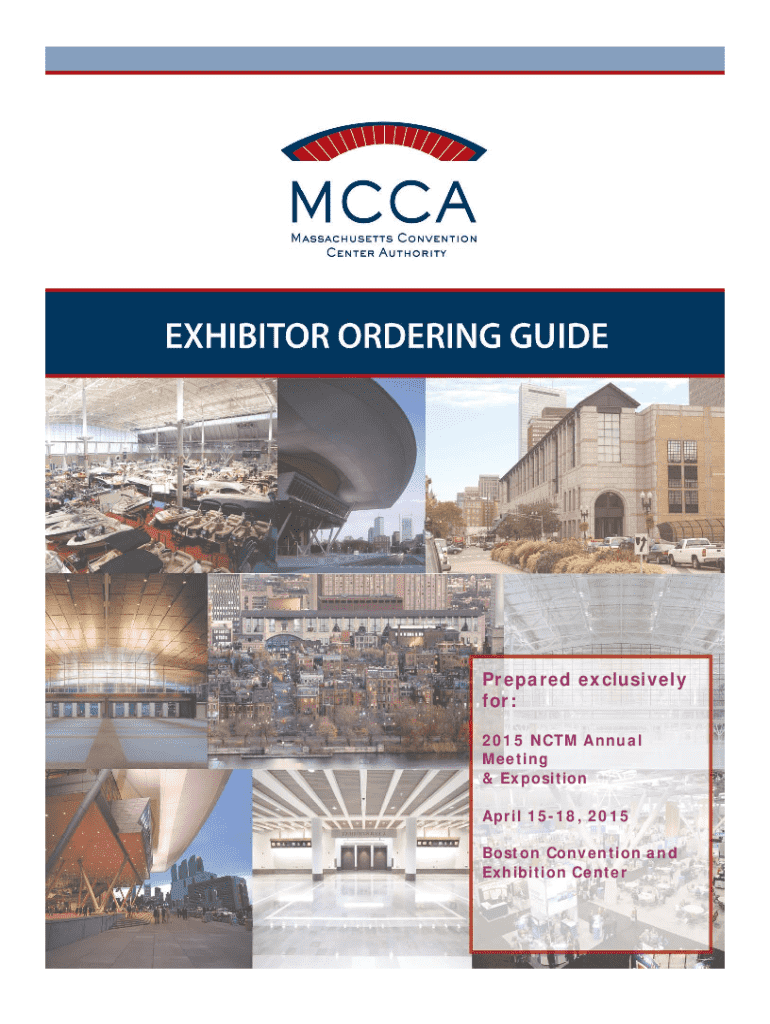 Prepared exclusively for: 2015 NCTM Annual Meeting & Exposition April 1518, 2015 Boston Convention and Exhibition CenterMCCA Exhibitor Ordering Guide TABLE OF CONTENTS Introduction .........................................................................................................................