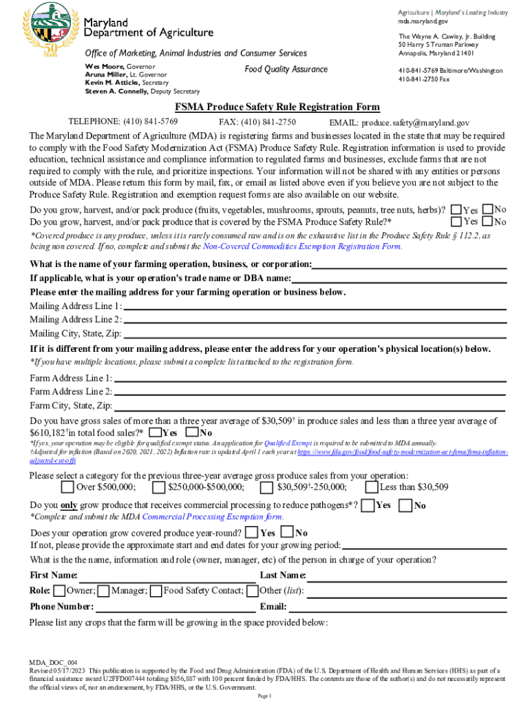 Get the free Fsma Produce Safety Rule Registration Form - mda maryland