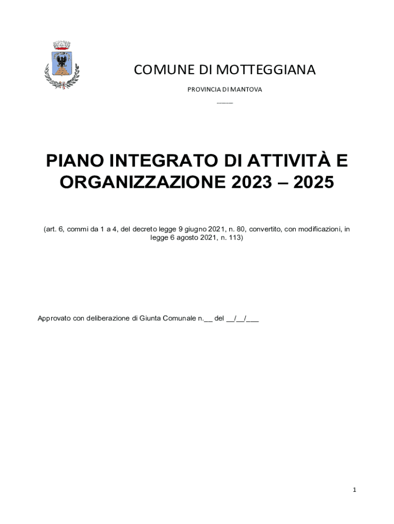 COMUNE DI MOTTEGGIANA PROVINCIA DI MANTOVA ___PIANO INTEGRATO DI ATTIVIT E ORGANIZZAZIONE 2023 2025 (art. 6, commi da 1 a 4, del decreto legge 9 giugno 2021, n. 80, convertito, con modificazioni,