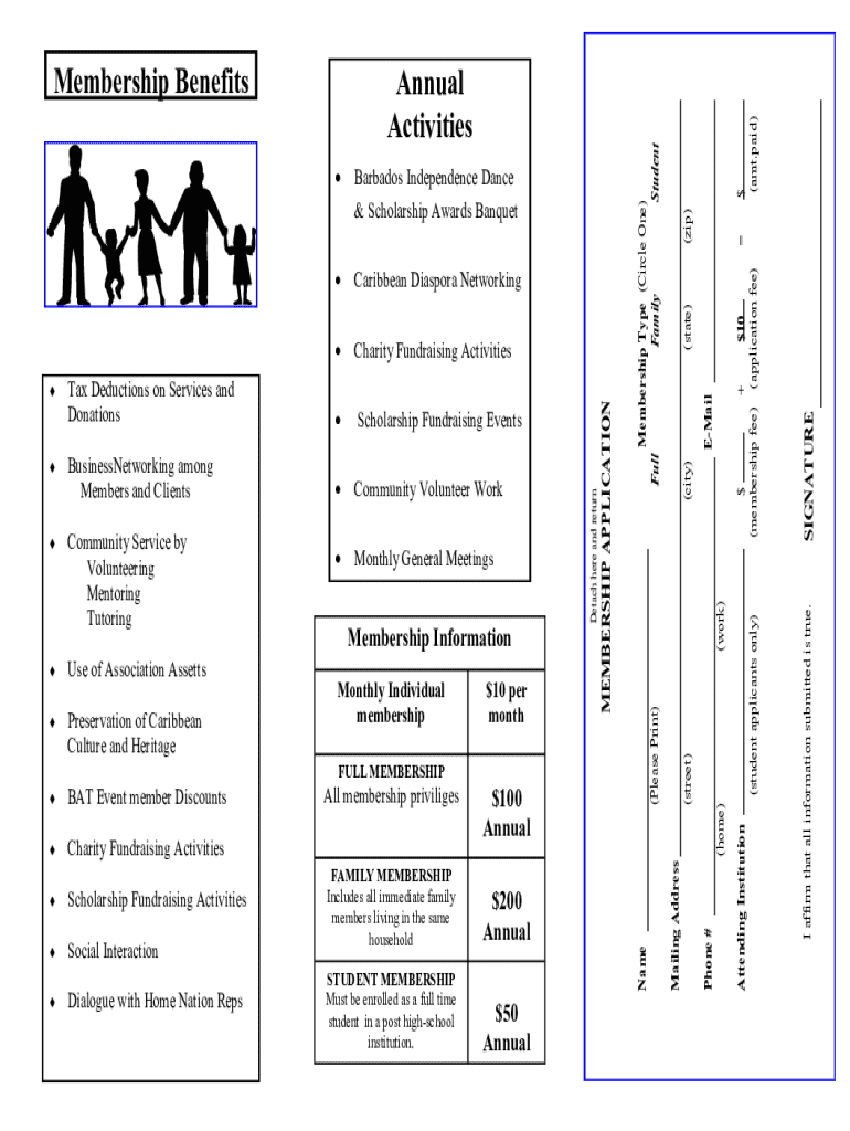 Monthly General MeetingsUse of Association AssettsPreservation of Caribbean Culture and HeritageBAT Event member DiscountsCharity Fundraising ActivitiesScholarship Fundraising ActivitiesSocial InteractionDialogue