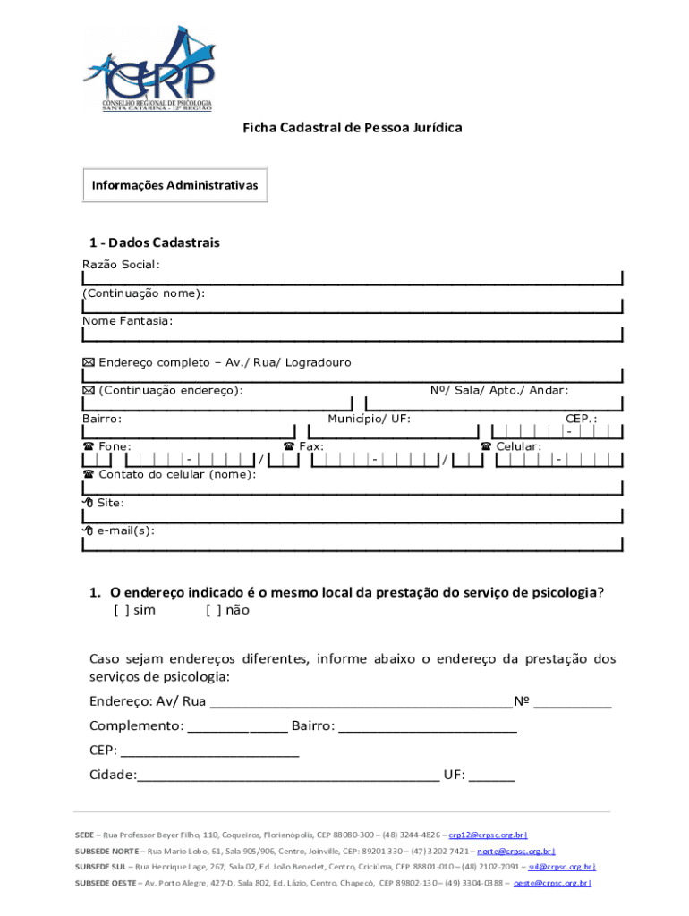 Obtenha o gratuito Ficha Cadastral de Pessoa Jurdica