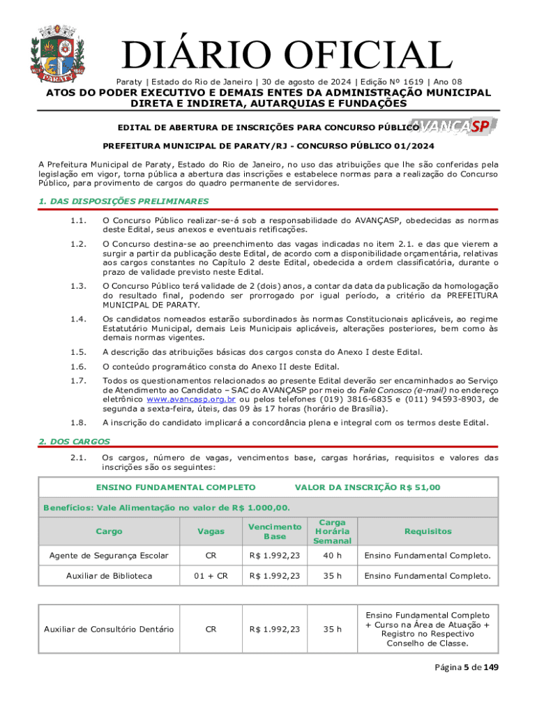 DIRIO OFICIAL Paraty | Estado do Rio de Janeiro | 30 de agosto de 2024 | Edio N 1619 | Ano 08ATOS DO PODER EXECUTIVO E DEMAIS ENTES DA ADMINISTRAO MUNICIPAL DIRETA E INDIRETA, AUTARQUIAS E FUNDAES