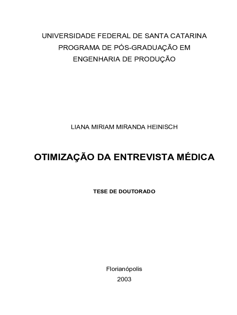 UNIVERSIDADE FEDERAL DE SANTA CATARINA PROGRAMA DE PSGRADUAO EM ENGENHARIA DE PRODUOLIANA MIRIAM MIRANDA HEINISCHOTIMIZAO DA ENTREVISTA MDICATESE DE DOUTORADOFlorianpolis 2003LIANA MIRIAM MIRANDA