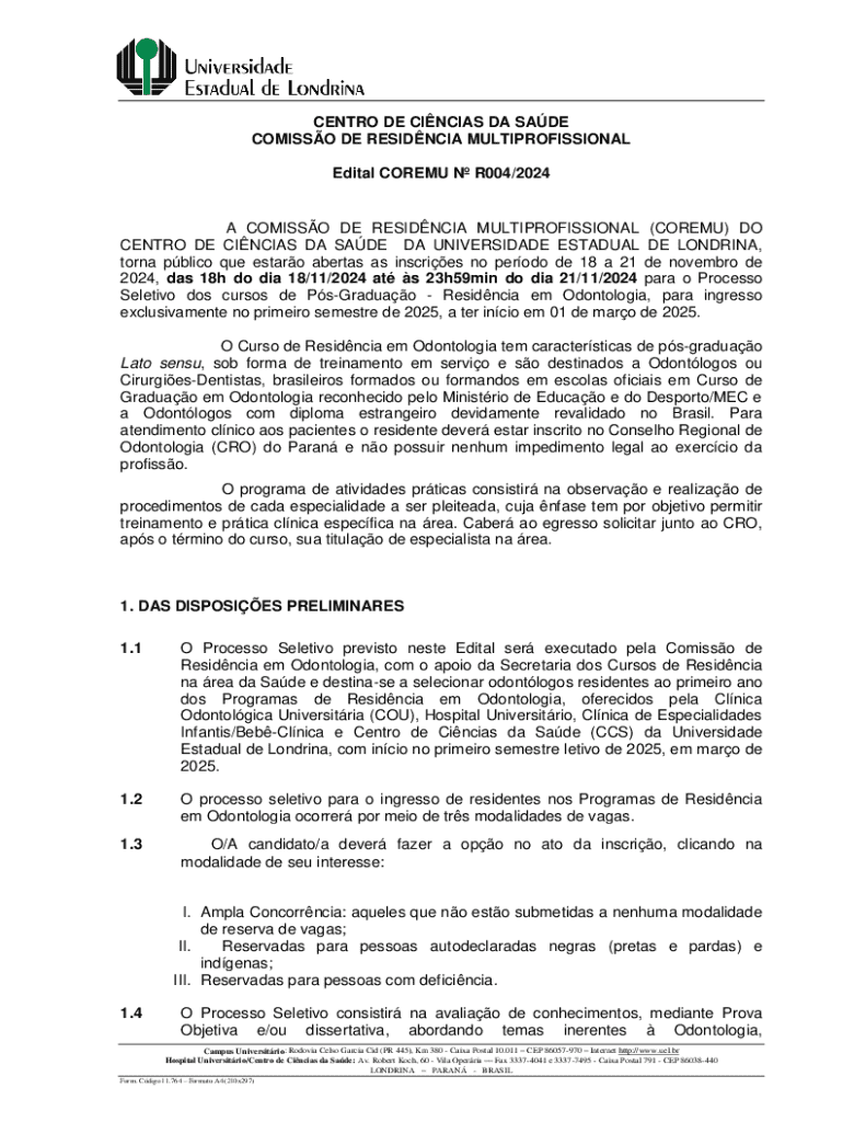 CENTRO DE CINCIAS DA SADE COMISSO DE RESIDNCIA MULTIPROFISSIONAL Edital COREMU N R004/2024A COMISSO DE RESIDNCIA MULTIPROFISSIONAL (COREMU) DO CENTRO DE CINCIAS DA SADE DA UNIVERSIDADE ESTADUAL DE