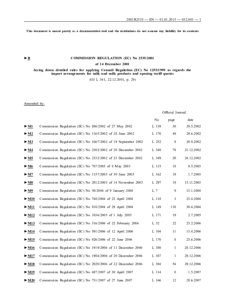 2001R2535 EN 01.01.2015 032.001 1 This document is meant purely as a documentation tool and the institutions do not assume any liability for its contentsBCOMMISSION REGULATION (EC) No 2535/2001 of