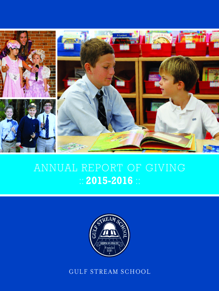 AN A nNnUA u ALl REP R e pOoRT Rt O o fF GGi IvVi InNG G :::: 20152016 20122013 ::::Gulf Stream SchoolGulf Streams campusmagnificent from any angleG u l f St r e a m S c h o o l m i S S i o n St a