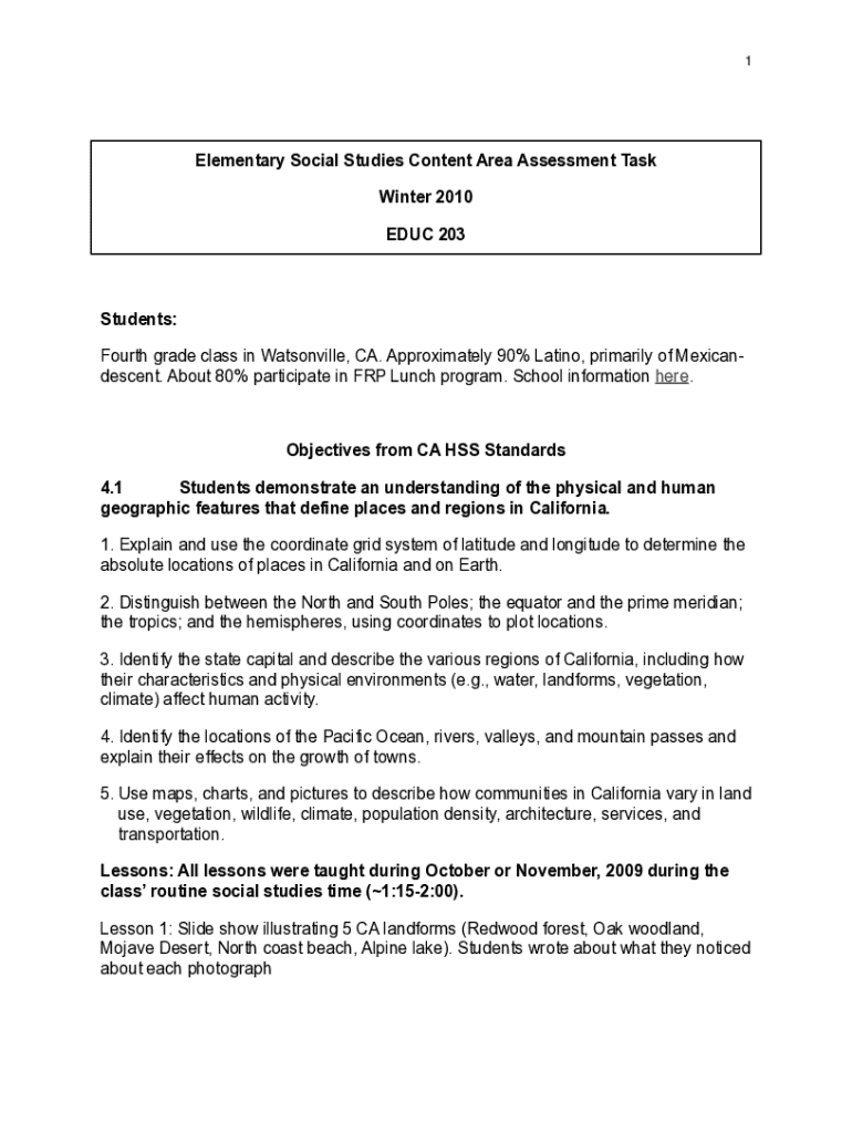 Get the free Elementary Social Studies Content Area Assessment Task - people ucsc