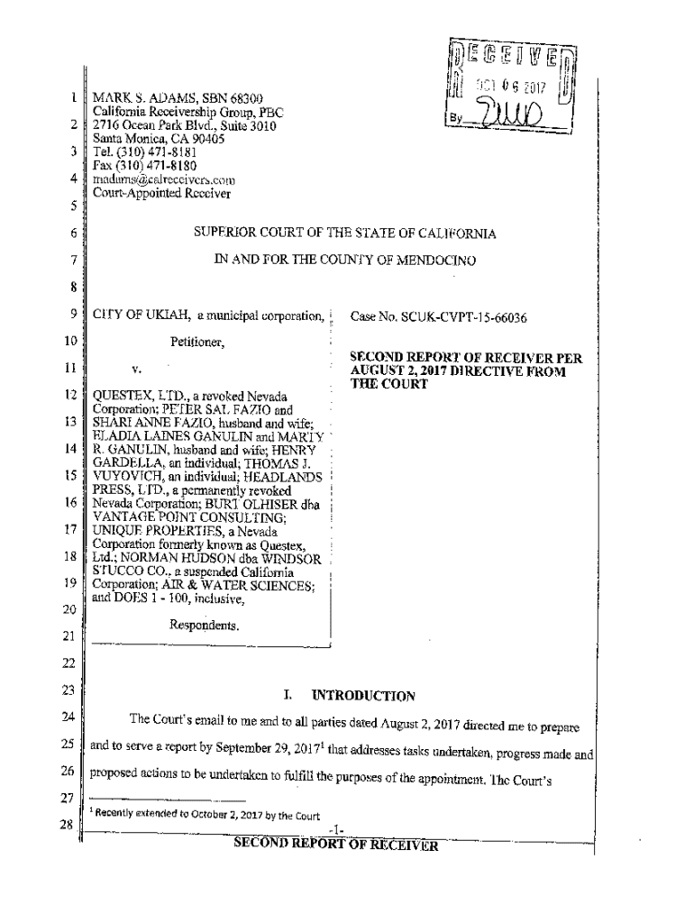 Get the free 6 7 11 SECOND REPORT OF RECEIVER PER AUGUST 2, ...
