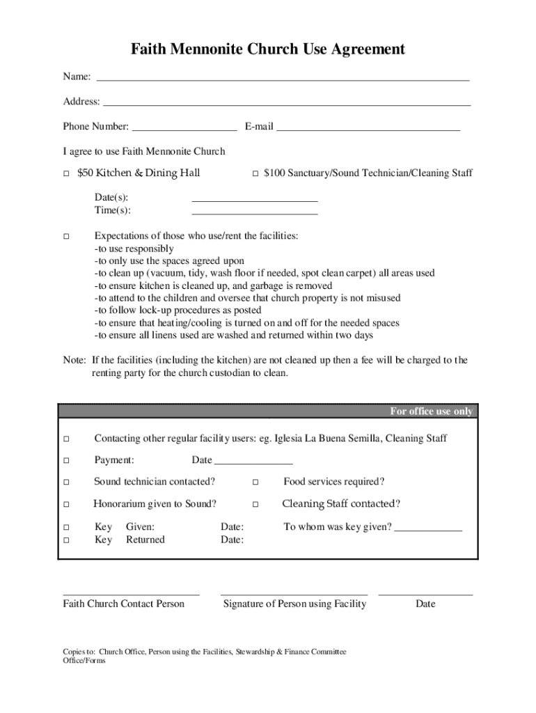 Get the free Faith Mennonite Church Use Agreement