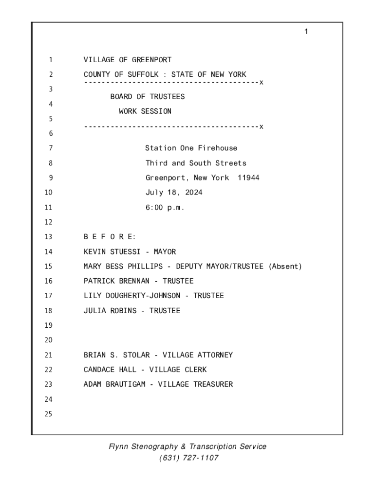 Get the free Greenport Village Board of Trustees Work Session