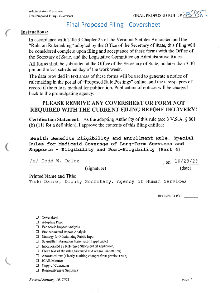 Get the free Final Proposed Filing - Coversheet