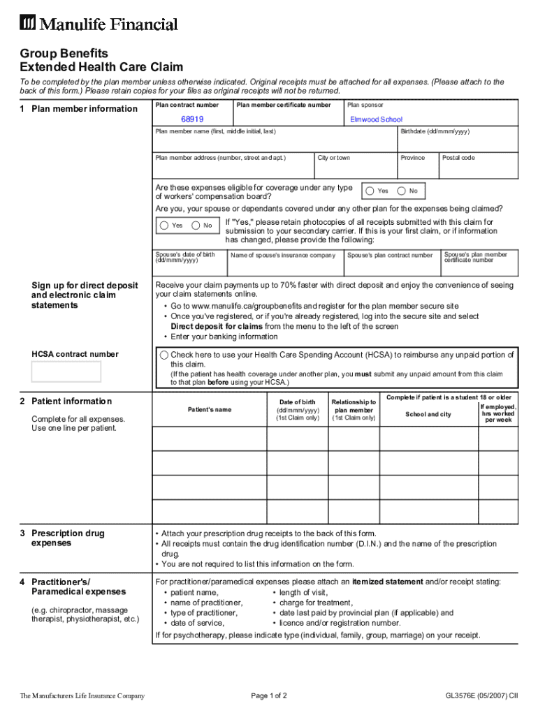 Group Benefits Extended Health Care Claim To be completed by the plan member unless otherwise indicated. Original receipts must be attached for all expenses. (Please attach to the back of this form.)