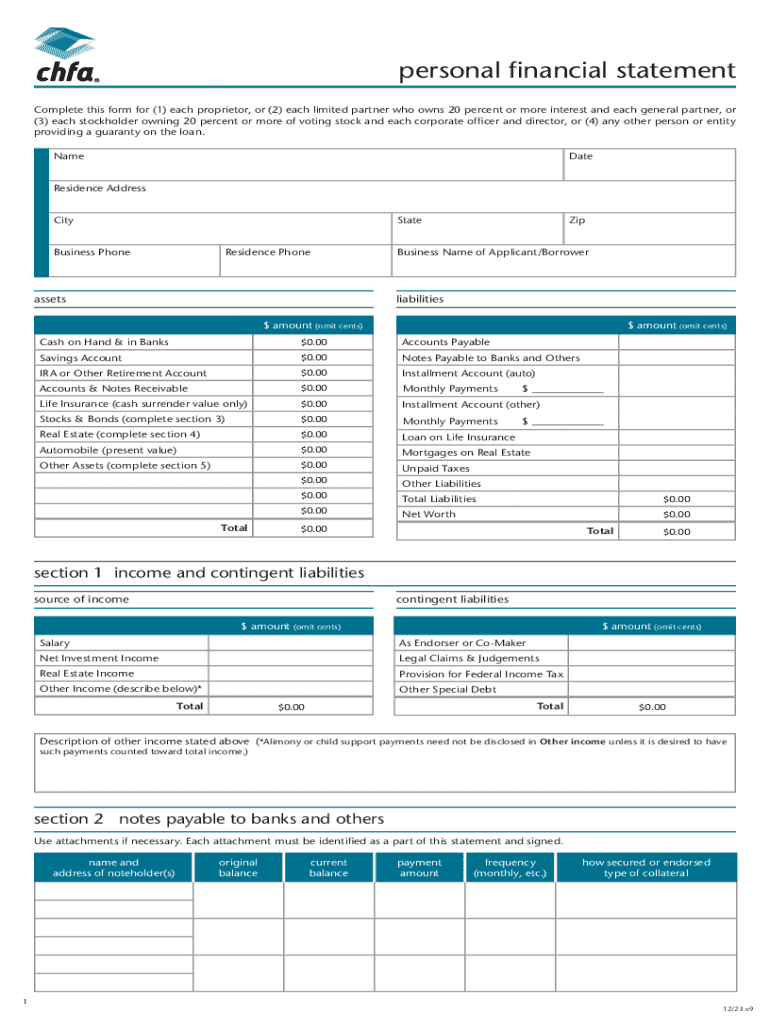 personal financial statement Complete this form for (1) each proprietor, or (2) each limited partner who owns 20 percent or more interest and each general partner, or (3) each stockholder owning 20
