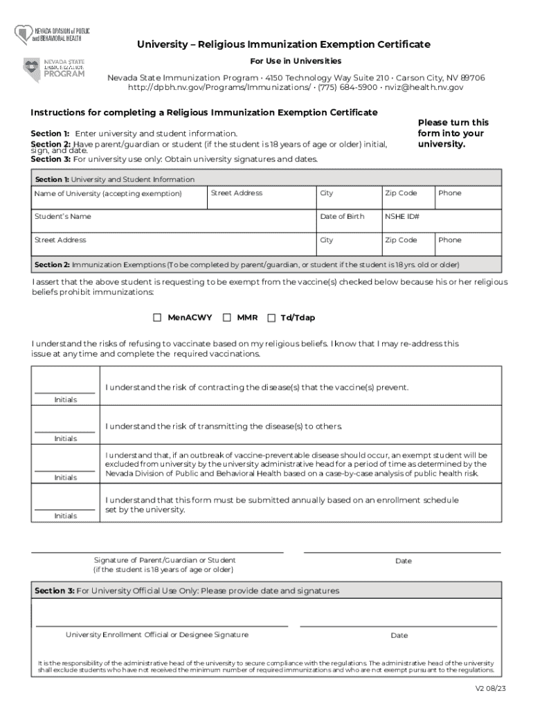 To fill out a university religious immunization exemption, students typically need to complete a specific form provided by the university, detailing their religious beliefs and the immunizations they are requesting to be exempt from.