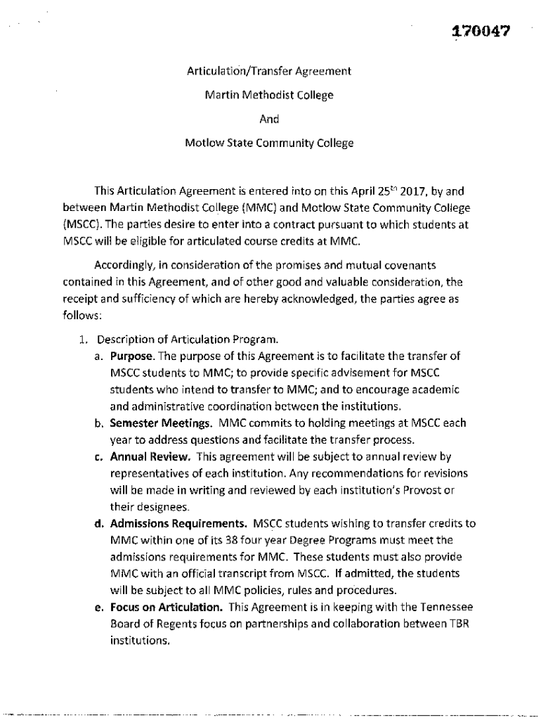 Get the free Articulation/transfer Agreement