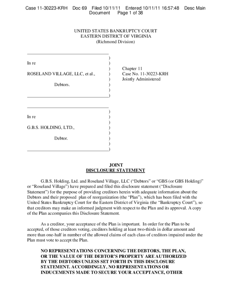 Get the free Joint Disclosure Statement