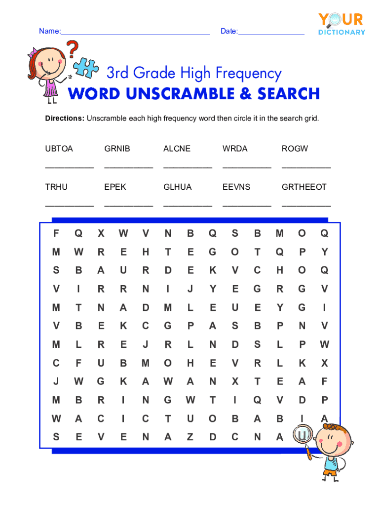 Get the free 3rd Grade High Frequency Word Unscramble & Search