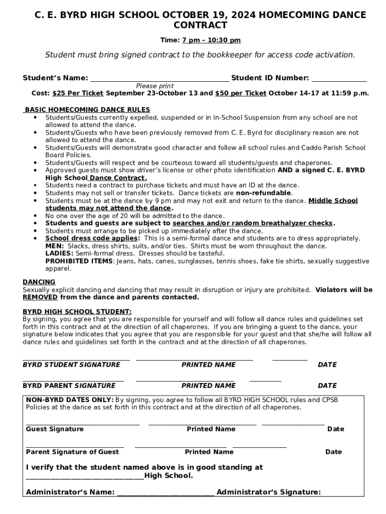 What is BYRD HIGH SCHOOL OCTOBER 19, 2024 HOMECOMING DANCE CONTRACT Form?