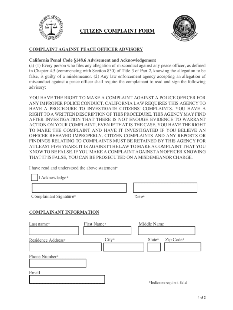 Get the free Citizen Complaint Procedure