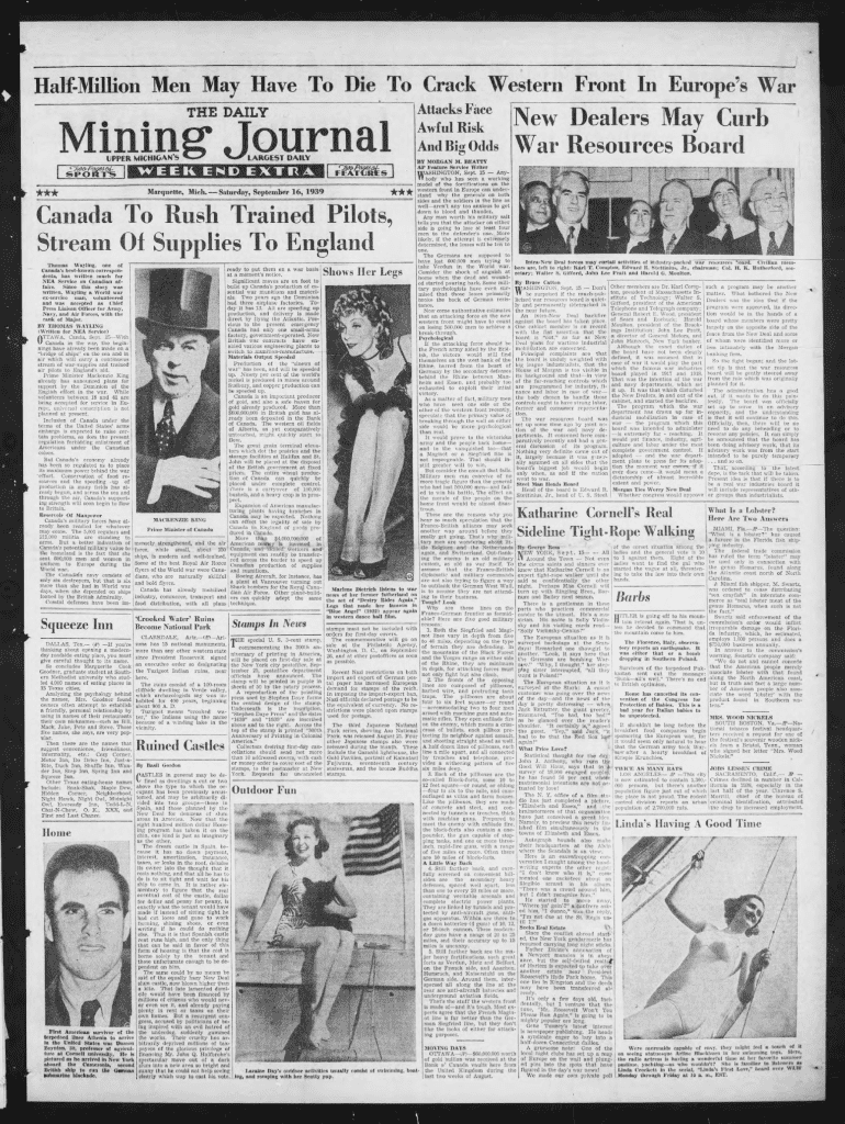 \"THEAttacks FaceDAILY: JournalMinin UPPER MICHIGAN\'SWEEKENDMarquette,Canada To Rush Trained Pilots, Stream Of Supplies To Engl and Thomas Wayling, one of Canadas bestknewn correspondents, has written much for NEA Service on Canadian affairs. Since this story was written, Wayling a World war exservice man, volunteered and was accepted as Chief Press Liaison Officer for Army, Navy, and Air Forces, with the rank of Major.| | ready to put them on | at a moments notice,Significantmovesawarbasis