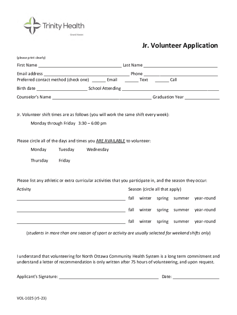 Get the free Jr. Volunteer Application