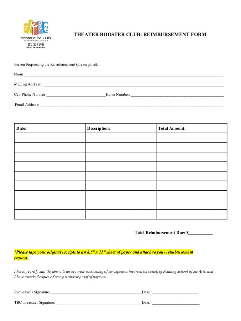 Get the free Theater Booster Club Reimbursement Form