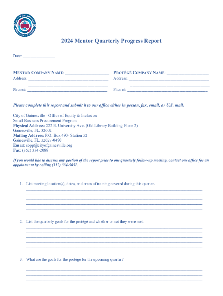 Get the free 2024 Mentor Quarterly Progress Report