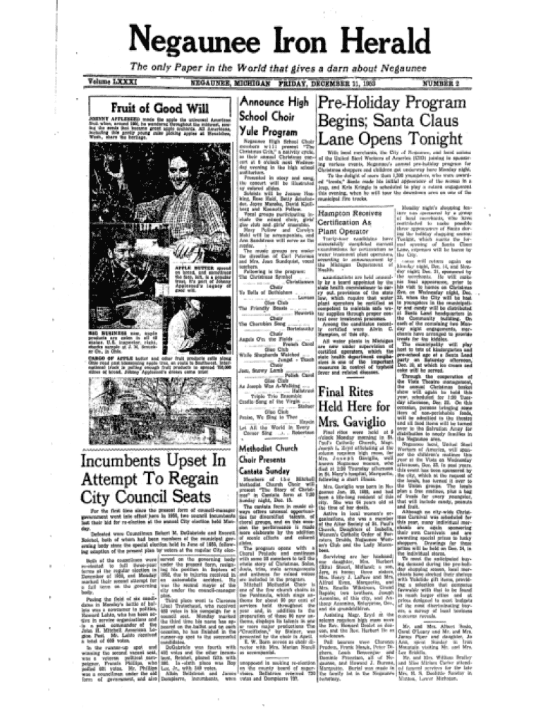 This edition of the Negaunee Iron Herald covers various local news and events in Negaunee, including a report on the Negaunee High School basketball team\'s upcoming games, community activities, holiday celebrations, and important local announcements.