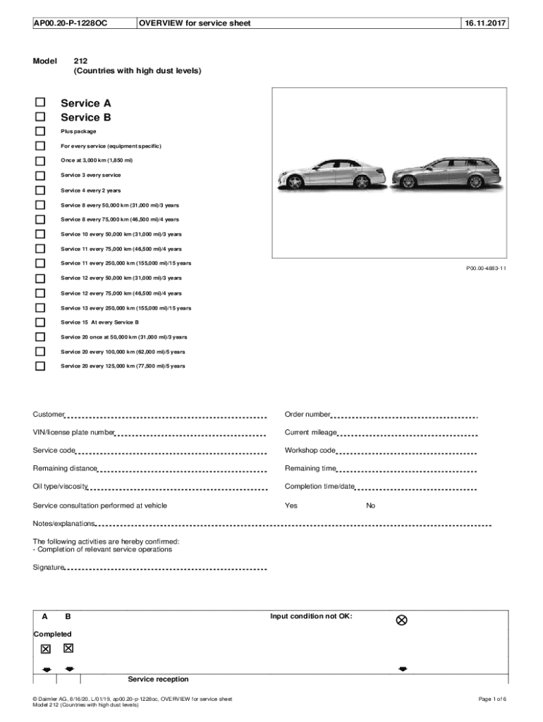 AP00.20P1228OCModelOVERVIEW for service sheet16.11.2017212 (Countries with high dust levels)Service A Service B Plus package For every service (equipment specific) Once at 3,000 km (1,850 mi) Service