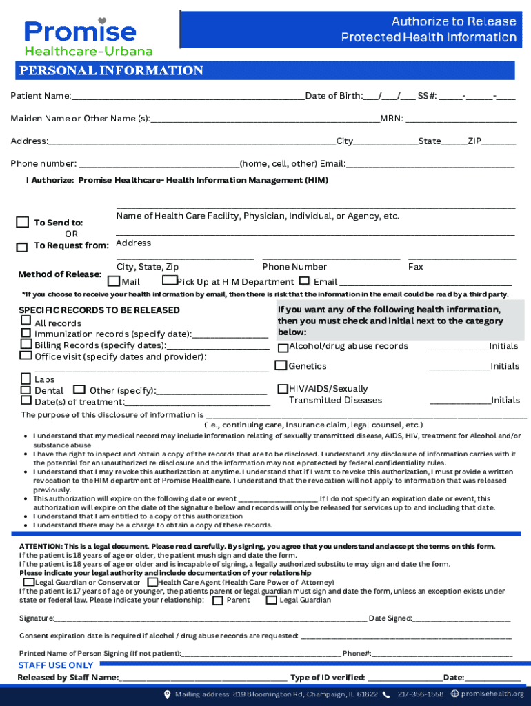 Get the free Authorization to Release Protected Health Information
