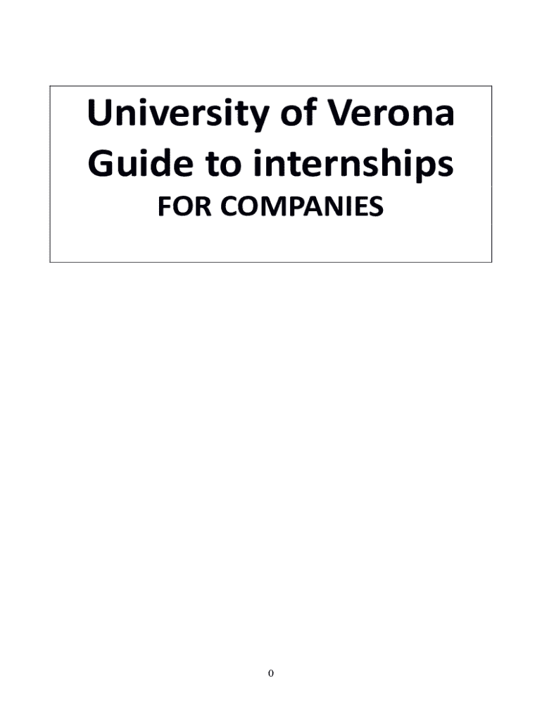 This document serves as a comprehensive guide for companies wishing to register for and manage internships with the University of Verona. It outlines the registration process, necessary documentation, and steps involved in offering internships to students and recent graduates, including legal representative information, disciplinary areas, and internship management.