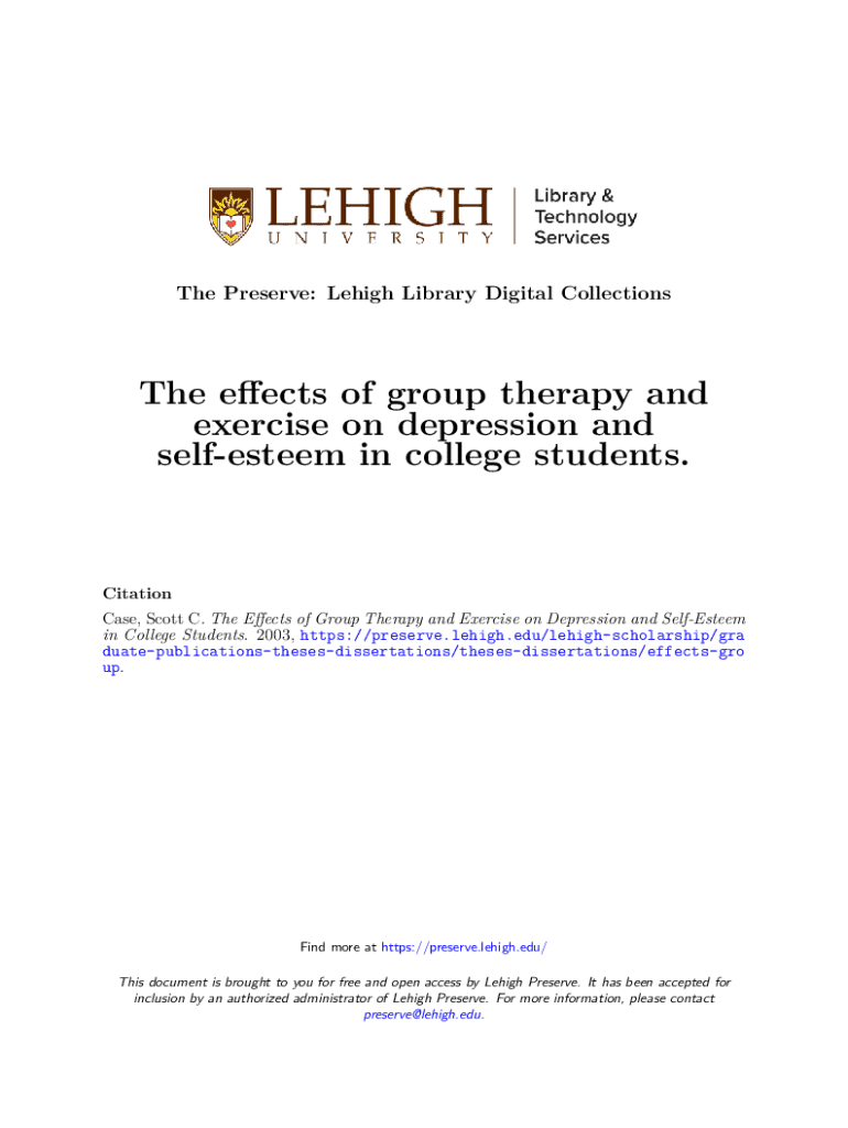 Get the free the Effects of Group Therapy and Exercise on Depression and Self-esteem in College S...