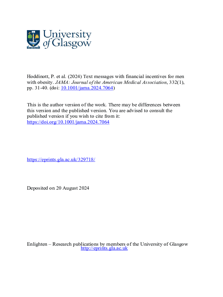 Get the free Text Messages With Financial Incentives for Men With Obesity