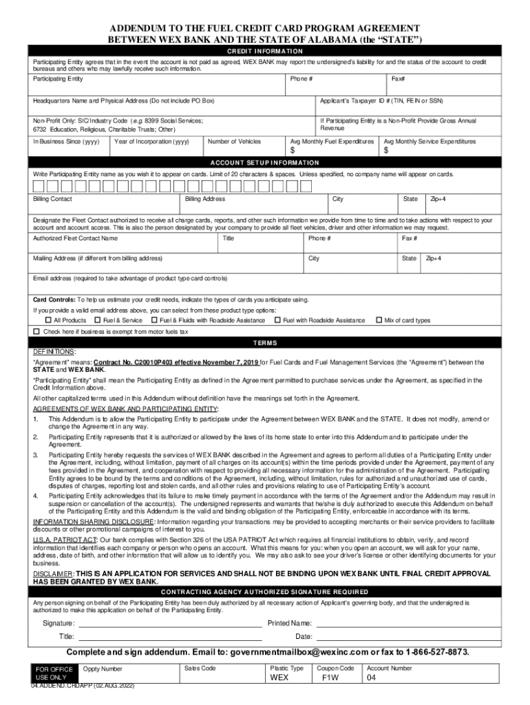 Get the free Online WEX Inc Alabama Fuel Card Agreement ...
